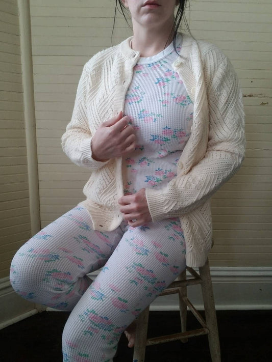 Vintage long johns, Figurfit, M L floral white thermals set of 2 long sleeves tee cozy pjs pajamas pink slim fit pants loungewear warm