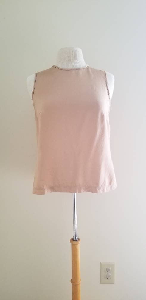 Vintage top, sleeveless tan silk size 6 beautiful soft cottagecore romantic