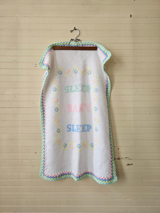 Vintage blanket baby gender neutral swaddle sleep crochet handmade pastel crib bedding shower gift boy girl cross stitch nursery newborn mom