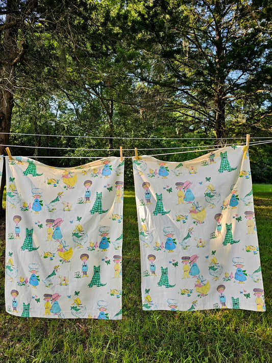 Vintage bedroom decor, handmade coverlet bedding blanket comforter half cafe curtains set of 5 70s nursery child gender neutral boy girl retro kitsch