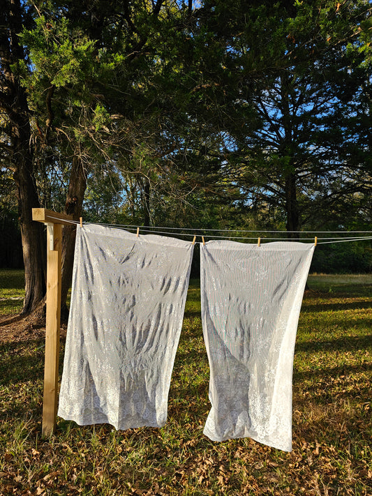 Vintage curtains, white lace set of 2 floral rod pocket 63" cottagecore Victorian country farmhouse shabby granny chic