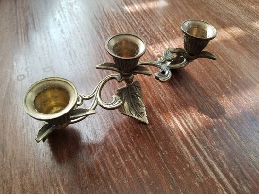 Vintage candlestick, brass candelabra taper candle holder leaf vine motif metal 3 unique table decor cottagecore fairy witchy forest garden