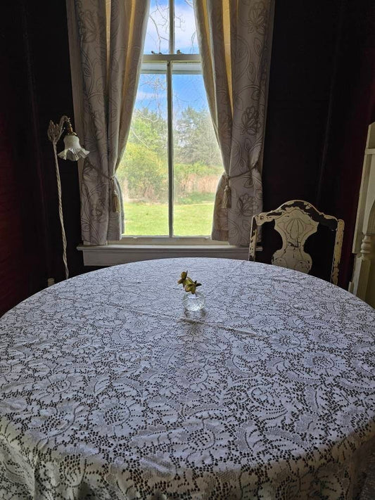 Vintage tablecloth, lace rectangle floral white simple paisley cottagecore Victorian grandmillennial granny shabby chic country farmhouse