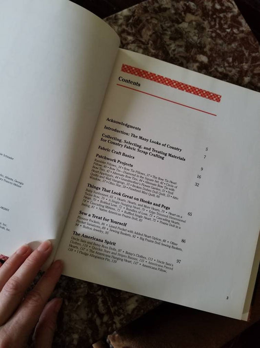 Vintage craft book, Country Fabric Scrap Crafts Michell 90s homemade gifts holiday sewing heirloom farmhouse coffee table hardback diy to do