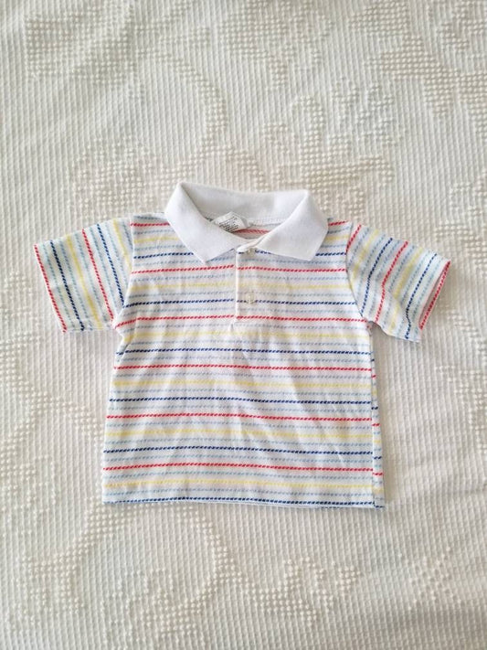 SALE Vintage Infant Stripe Shirt / Royal Heir / 18 months / Collared / Short Sleeves / Red / Yellow / Blue / White / Cotton Knit / Unisex Tee