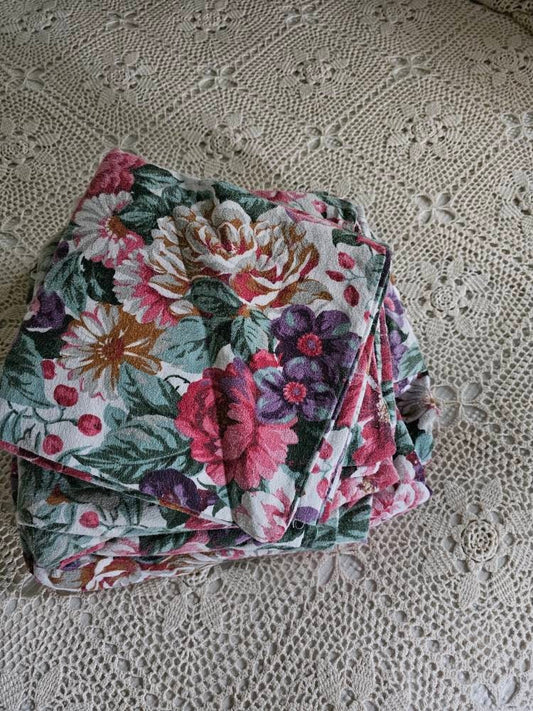 Vintage sheets, Franco set of 4 king fitted flat pillowcases flannel floral pink winter cottagecore country farmhouse granny shabby chic