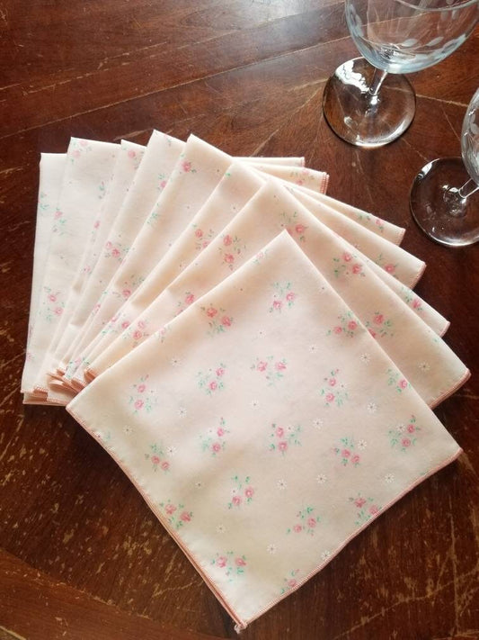 Vintage napkins, set of 8 peach pink floral rose daisy square polycotton cottagecore granny shabby chic country farmhouse grandmillennial