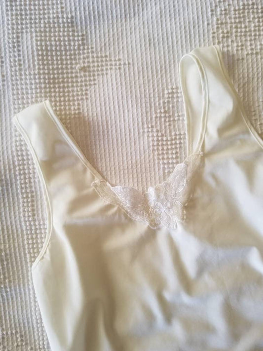 Vintage White Camisole / Size 34 / Lace Trim / 70s / Cami / Half Slip / Off White / Cream / Vintage Lingerie / Thick Straps / Scallop Edges