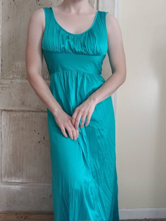 Vintage Green Nightgown / Vanity Fair / Size 32 / Grecian / Scoop Neck / Long / Maxi / Ankle Length / Sexy / Peignoir Gown / Sleeveless