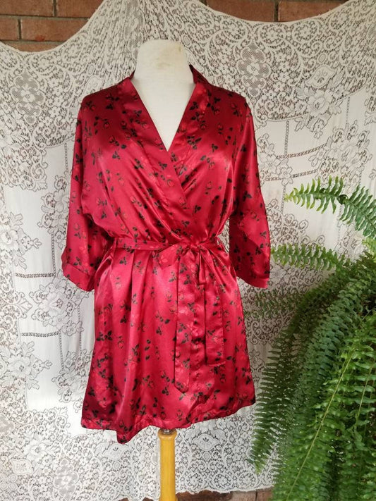 Vintage lingerie set, Private Moments, medium, red, black, floral, sexy, babydoll nightgown, robe, short, sleepwear, vamp, rockabilly, pinup