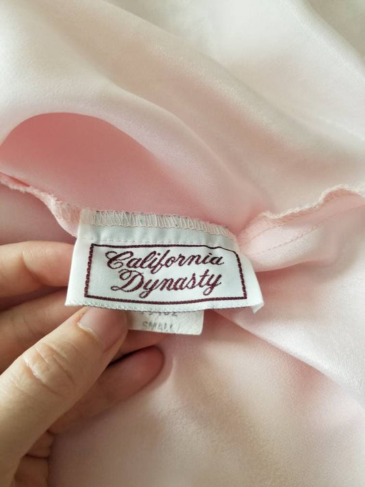 Vintage nightgown, California Dynasty, small, babydoll, pink, short, lace, v neck, spaghetti straps, sleeveless, lingerie, sexy, leg slits
