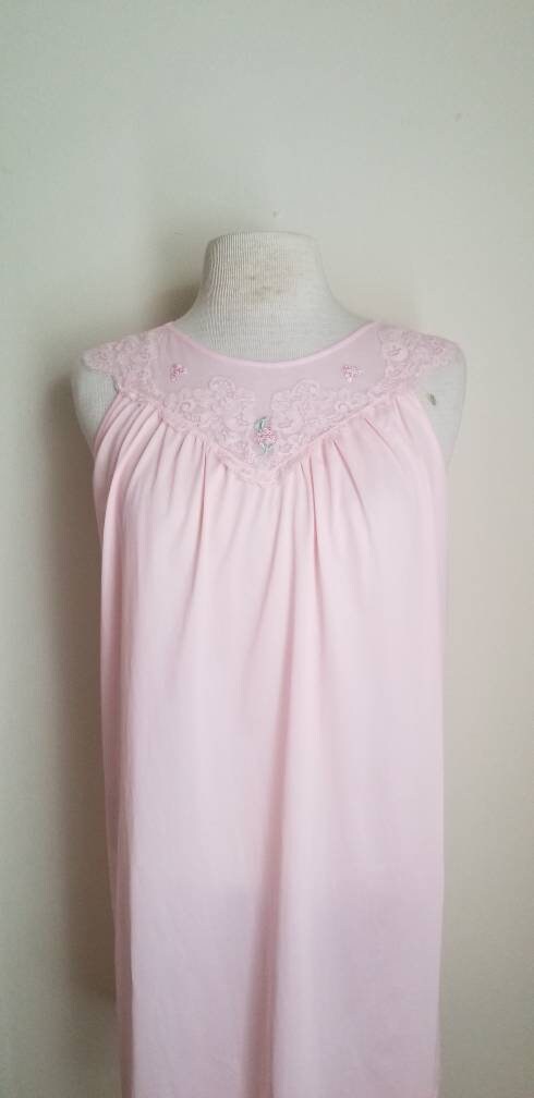 Vintage nightgown, Aristocraft by Superior pink sleeveless medium embroidered floral cottagecore nylon granny