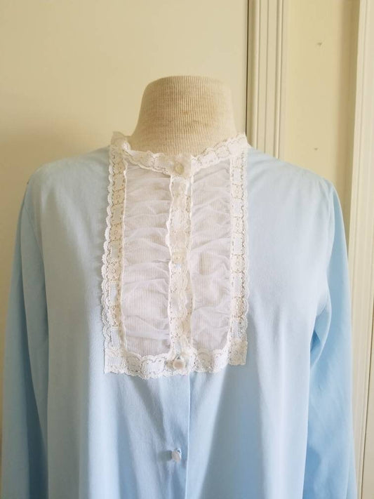 Vintage pajama, Sears size 40 tunic top long sleeves nylon lace granny