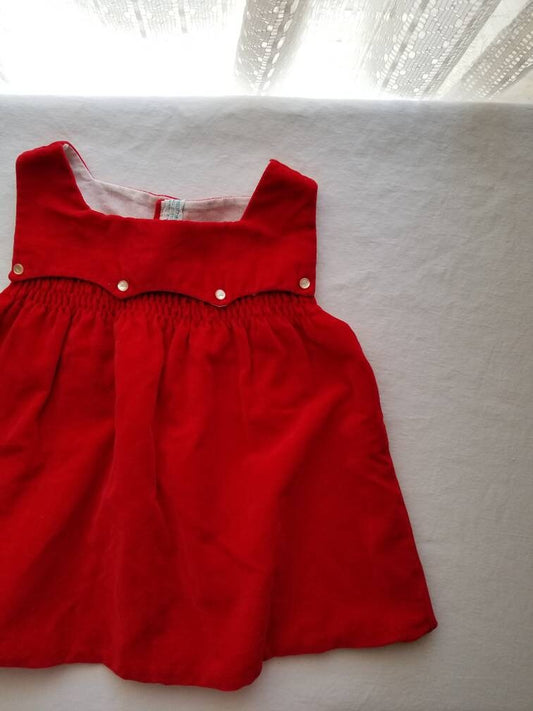 SALE Vintage Red Velvet Infant Dress / Cherub Dress / 18 mo / Vintage Cotton Dress / Valentine's Dress / Christmas Dress / Smocked Pinafore Dress