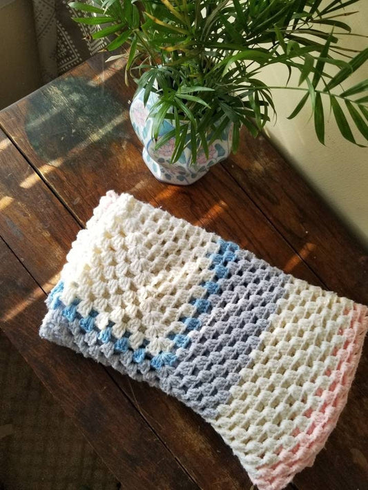 SALE Vintage Crochet Baby Blanket / Handmade / Gender Neutral / Newborn Gift / Baby Shower Gift / Nursery Decor / Crib Bedding / Baby Blue / Pink