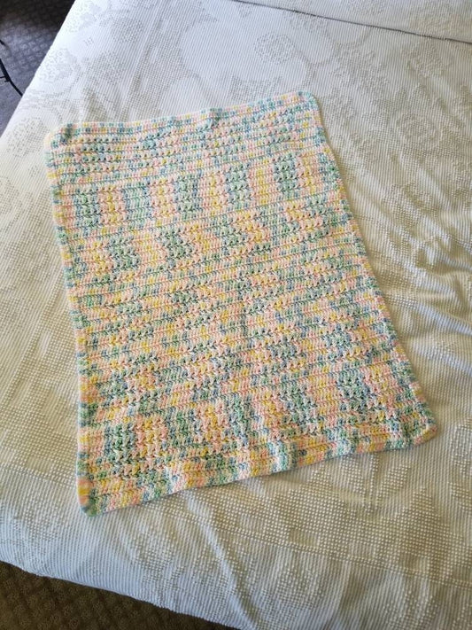 SALE Vintage crochet blanket, handmade, rainbow, pastel colors, baby blanket, gender neutral, crib bedding, nursery decor, boy, girl, throw