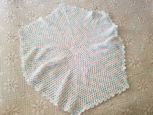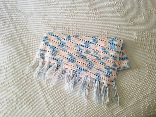 SALE Vintage Crochet Blanket / Handmade / Gender Neutral / Baby Shower Gift / Newborn / Nursery / Crib Bedding / Pastel / Pink / Blue / Tassels