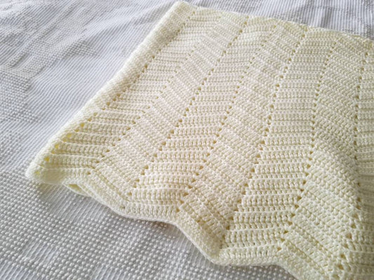 SALE Vintage Crochet Blanket / Handmade / White / Cream / Chevron / Scallop / Throw / Neutral / Granny Chic / Baby Gift / Crib Bedding / Nursery