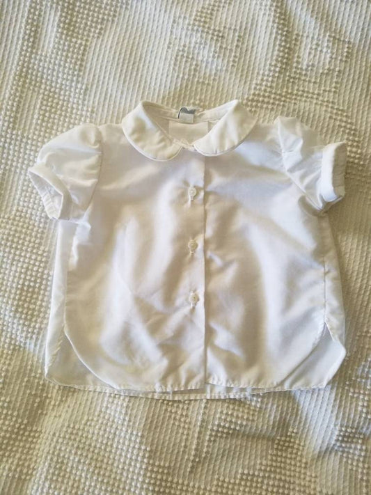 SALE Vintage white shirt, toddler girl, infant, peter pan collar, button front, short sleeves, Magic Years, puff sleeves, 12-18 mo, basic, blouse
