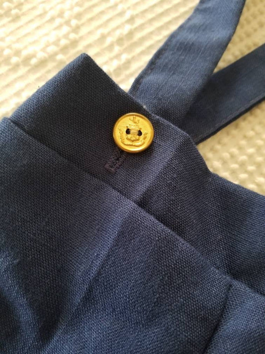 SALE Vintage Short Overalls, suspenders, baby, size 1, navy blue, matching bowtie, brass buttons, 2 pc set, sailor suit, nautical, cruise, boat