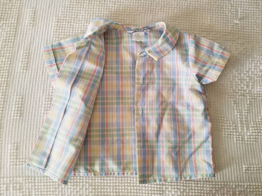 SALE Vintage shirt, Little Goodies by Good Lad, 18m, button up front, short sleeves, gender neutral, stripes, rainbow, boy, girl, baby, plaid