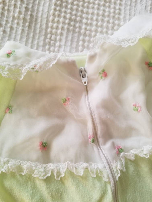 SALE Vintage sleepers, set of 3, footed, pajamas, girl, infant, baby, collar, pink, green, floral, lace, long sleeves, snaps, zipper, newborn