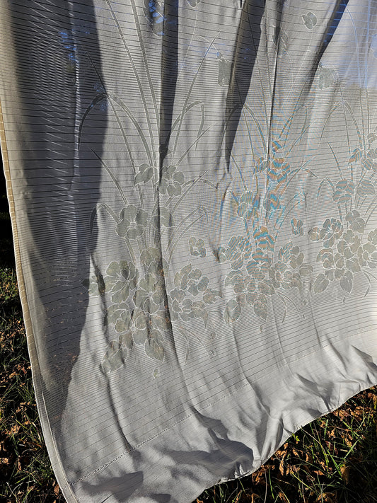 Vintage shower curtain, 70s floral beige lace sheer boho bohemian hippy cottagecore MCM retro feminine