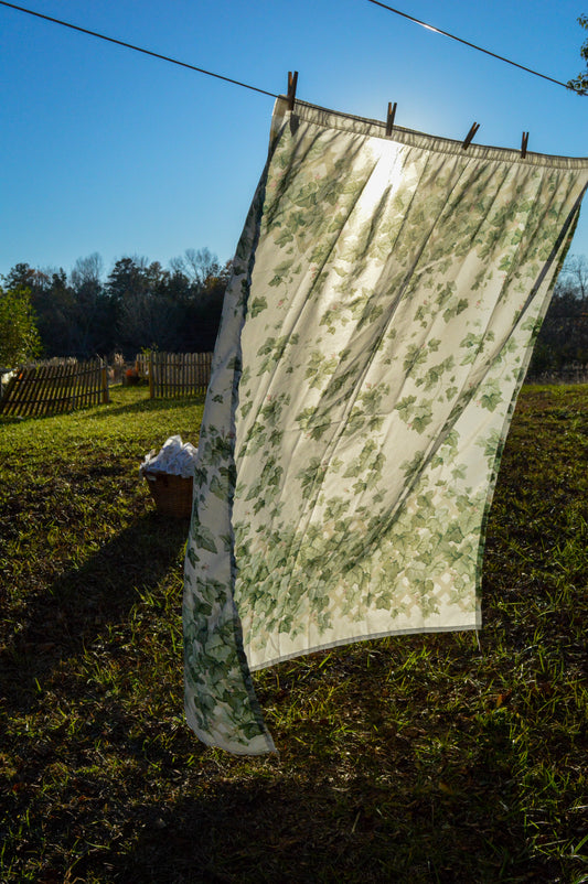 Vintage shower curtain Springs Home English ivy vine green white flora greenery plants rose floral lattice fence cottagecore country farmhouse shabby granny chic