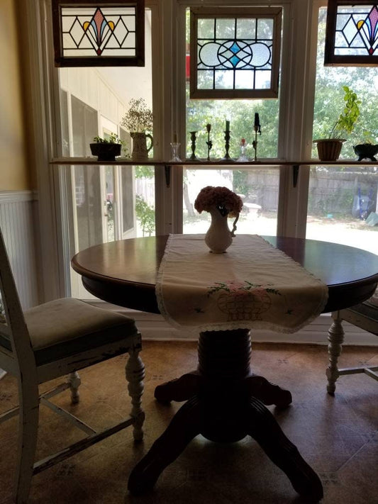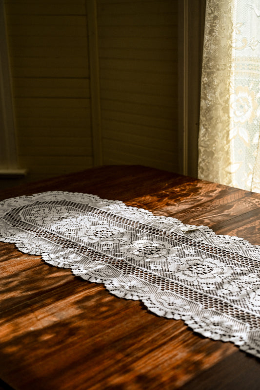 SALE Vintage table runner, 4, long, white, lace, floral, granny chic, shabby chic, cottage core, farmhouse, Victorian, boho, 73", scallops, large