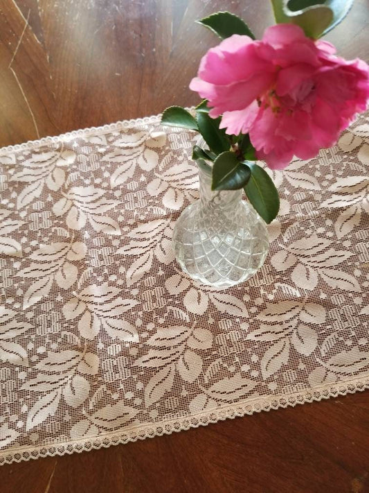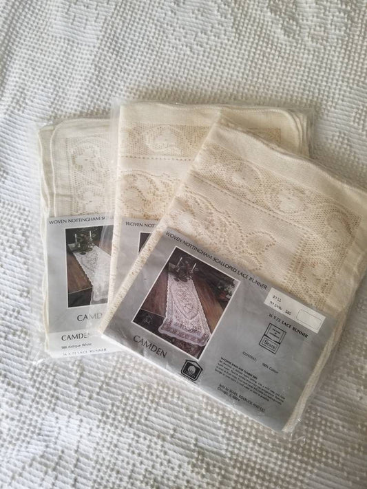 SALE Vintage lace runner, Sears, table linen, granny chic, shabby chic, cottage core, NIP NOS, floral, new unused, 16 x 72, antique white, cotton