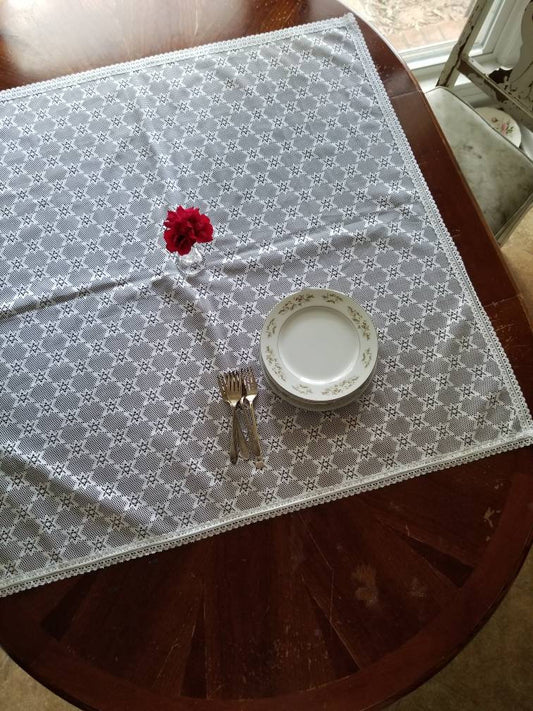 SALE Vintage tablecloth, lace, trim, square, star pattern, geometric, shabby chic, granny chic, cottagecore, fancy, romantic, holiday, small