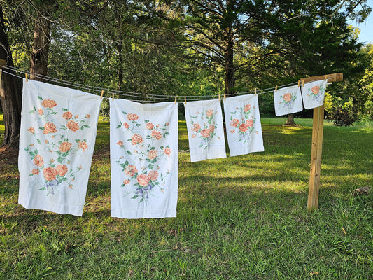 Vintage towels, Martex set of 5 bath hand washcloths cotton floral rose peach pink MCM NOS unused cottagecore Victorian granny shabby chic